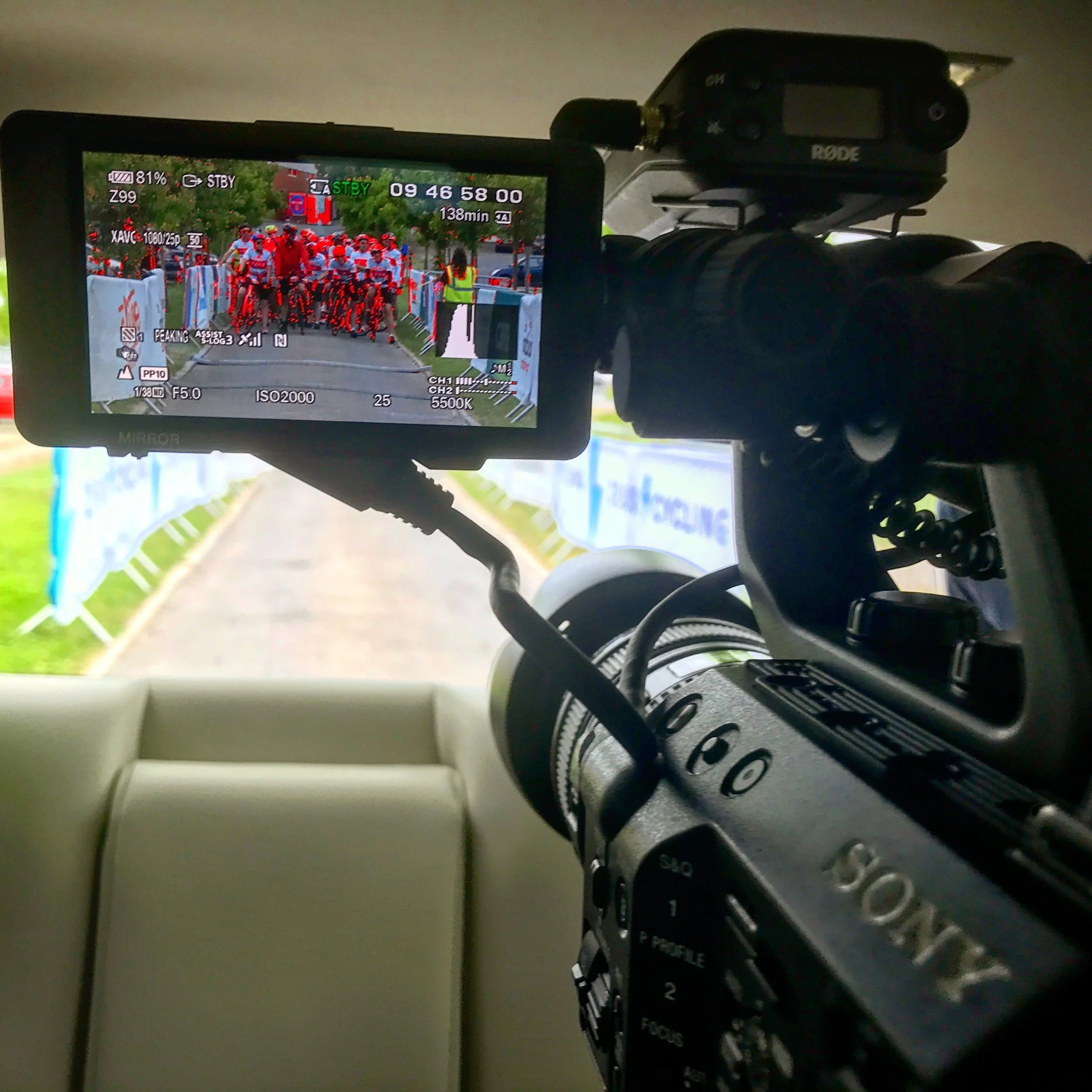 For kit, you have two realistic options: a large shoulder-mounted camera such as an FX9 or a broadcast body, or a small camera on a capable gimbal. This is where mid-size cameras like the FX6 actually create more problems than they solve. They're not small enough to sit comfortably on a gimbal in a confined space, and not heavy enough to shoulder with any real stability. Trying to use an FX6 the way it's designed to be used on a moving bike introduces jitter that you simply cannot clean up in post. Go small with a capable gimbal like an RS3 Pro, or go large and shoulder it properly with a viewfinder. There's no comfortable middle ground.